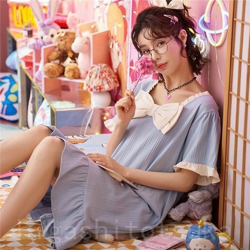 ワンピースパジャマ ルームウェア レディース 半袖 薄手 涼しい 部屋着 ホテル 春夏用 可愛い パジャマ 通販 Lineポイント最大get Lineショッピング